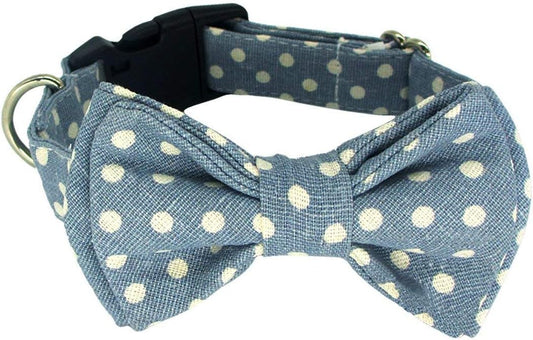 Kebs Kebocis Dog Bow Tie Collar with Detachable Bowtie Adjustable Polka Dots Neck Tie for Medium Dogs, Light Blue